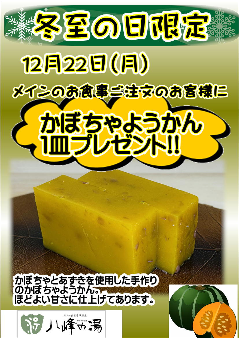 お食事処(冬至・クリスマスメニュー) お知らせ | 2025.12.14 (日) お食事処で特別メニュー12月16日〜25日(クリスマスメニュー)12月22日(冬至ミニデザート)共に数量限定ですのでご了承ください « 前のページ 次のページ »